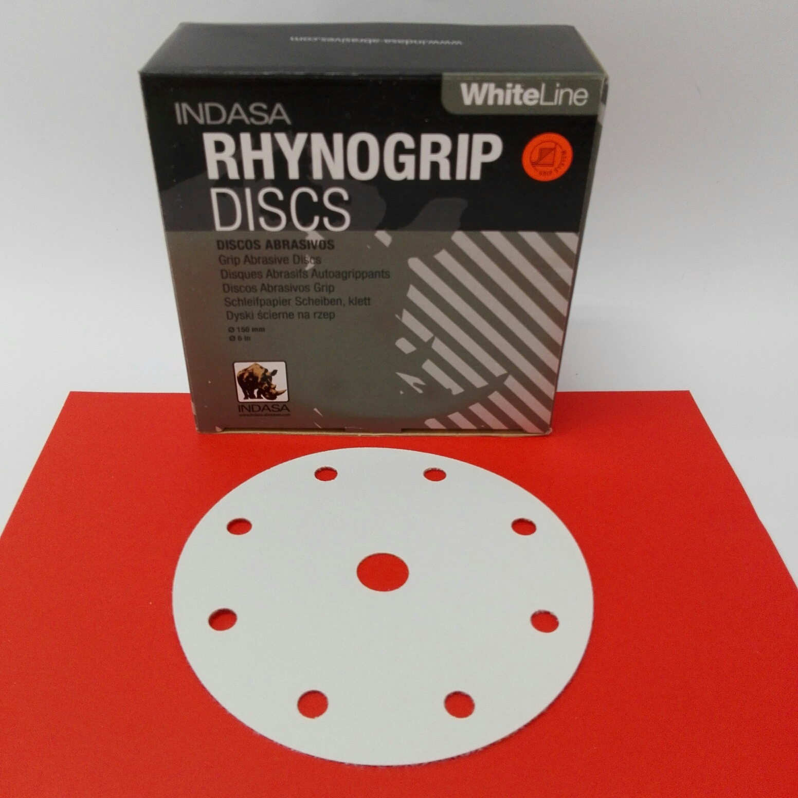 DYSK ŚCIERNY INDASA RHYNOGRIP WHITE LINE śr Fi 150 mm 8 otworów po zewnętrznej + 1 w środku - cena za opakowanie 50 szt - P-100